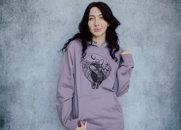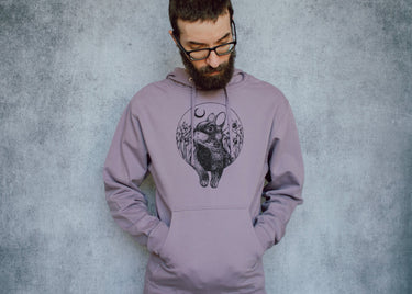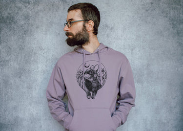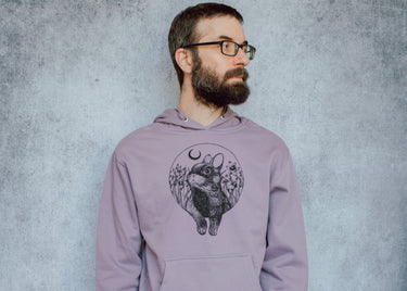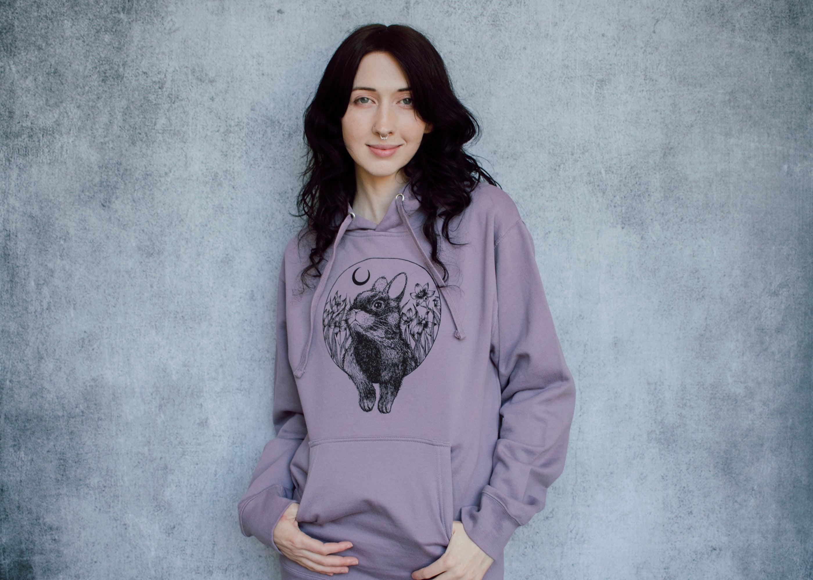 - “Rabbit and Moon” was hand drawn by Joelle. Lovingly hand screen printed in our Lemoyne, PA print studio by Justin in black water based eco ink.