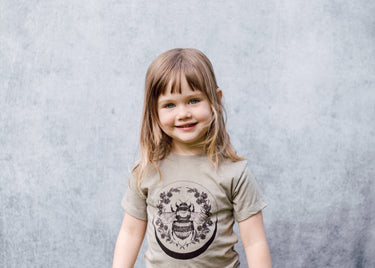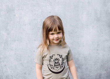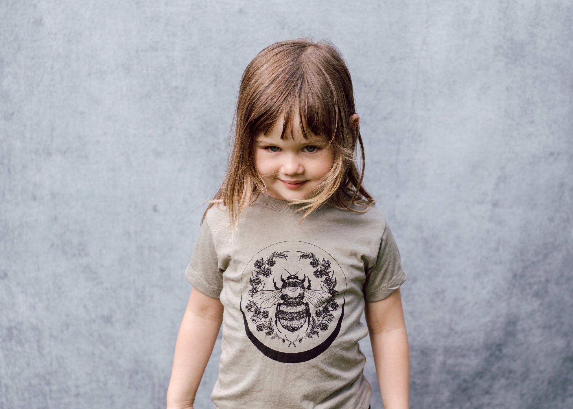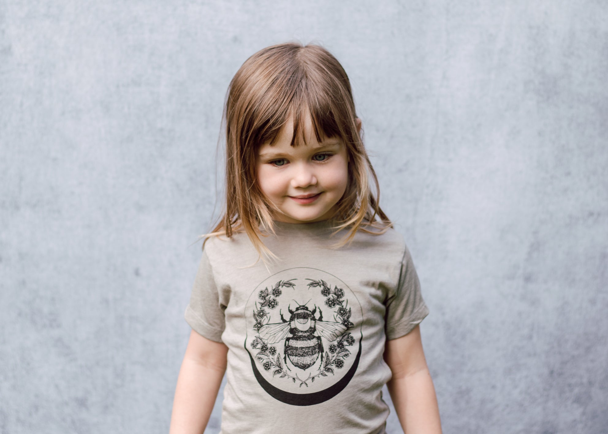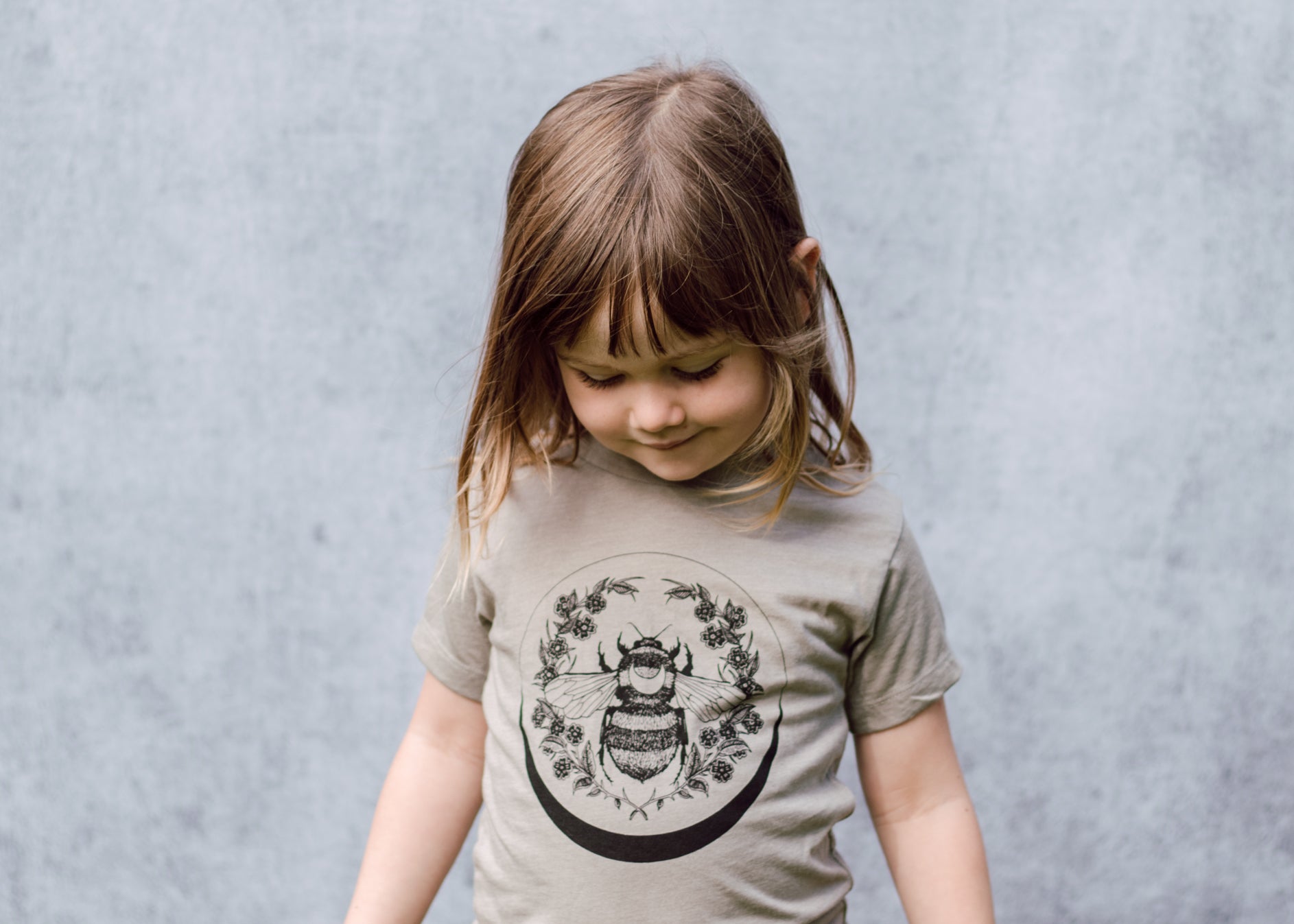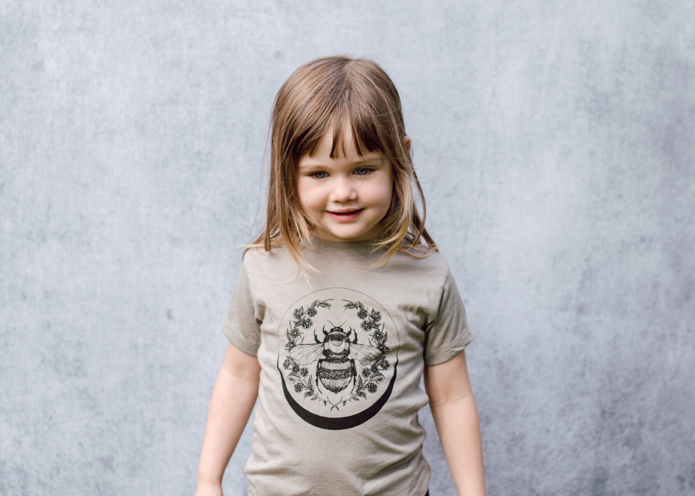 What customers are saying: Customers love the super soft feel, quality construction, and sweet bee design on this tee… but the most frequent comment we get is how much people love this stone color. In a sea of pink and blue, light pastels and glitter; a subtle neutral shade that’s a little unique really stands out.